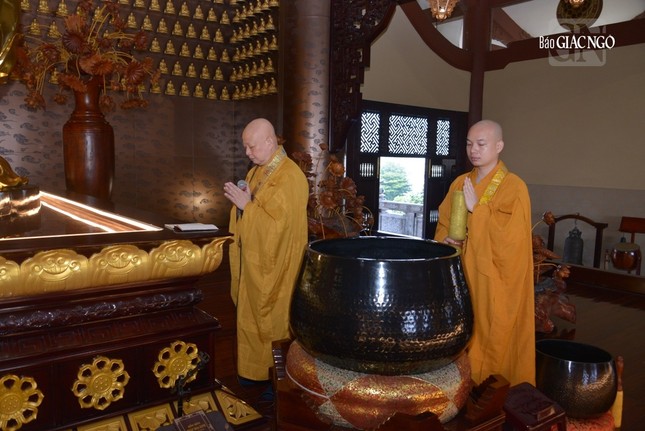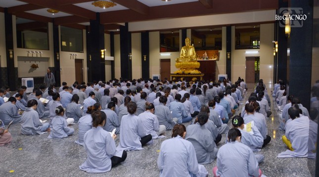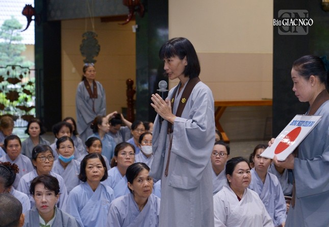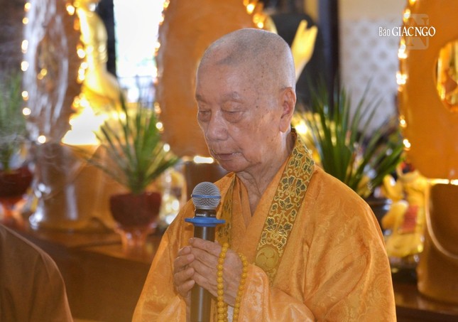 Sau đó, Hòa thượng Thích Lệ Trang, trụ trì chùa đã có thời pháp thoại về ý nghĩa biểu tượng của Tam bảo trong đời sống tâm linh của người Phật tử và 5 giới căn bản của người Phật tử tại gia.