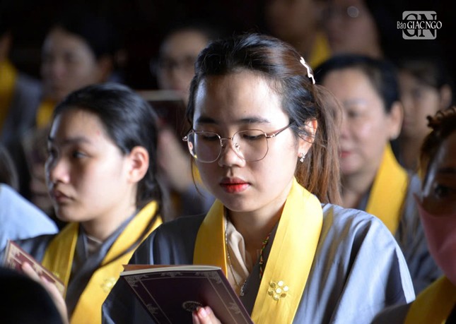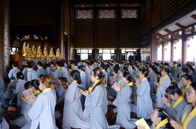 Sáng 8-6 (13- 5-Ất Tỵ), hơn 700 người đã đến chùa Huê Nghiêm - TP.Thủ Đức (TP.HCM) phát nguyện quy y Tam bảo theo lịch sinh hoạt định kỳ của đạo tràng Pháp Hoa.