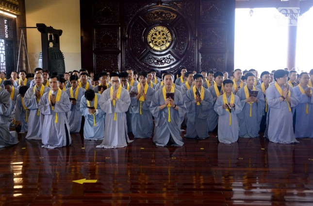 Đại lão Hòa thượng Thích Trí Quảng, viện chủ chùa Huê Nghiêm thân lâm niêm hương bạch Phật, hướng dẫn đại chúng sám hối và phát nguyện quy y Tam bảo.
