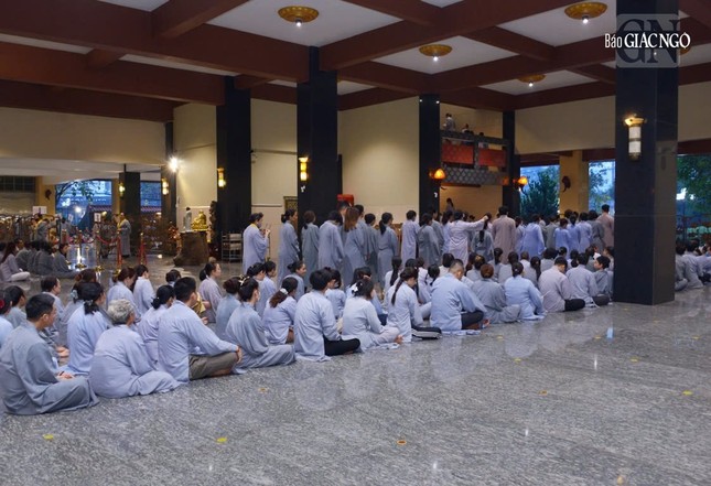 Chiều cùng ngày, đại chúng đồng tham dự Lễ sám hối, phổ thí âm linh cô hồn, hướng tâm đại bi đến vạn loại, đặc biệt là những chúng sinh không nơi nương tựa, thiếu thốn các thiện duyên, đang chịu nhiều bức bách khổ não để mang đến sự no ấm, an lạc cho họ.