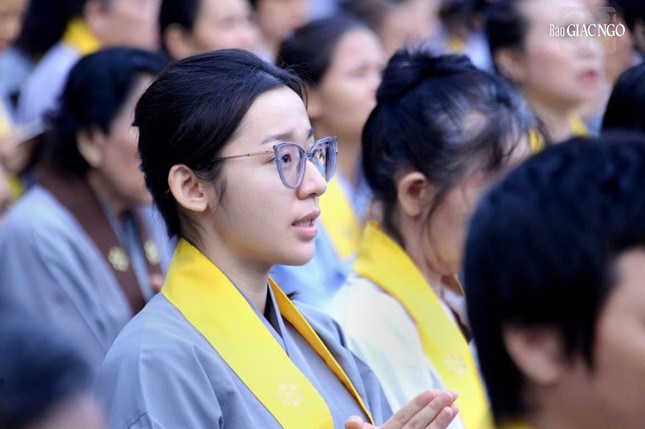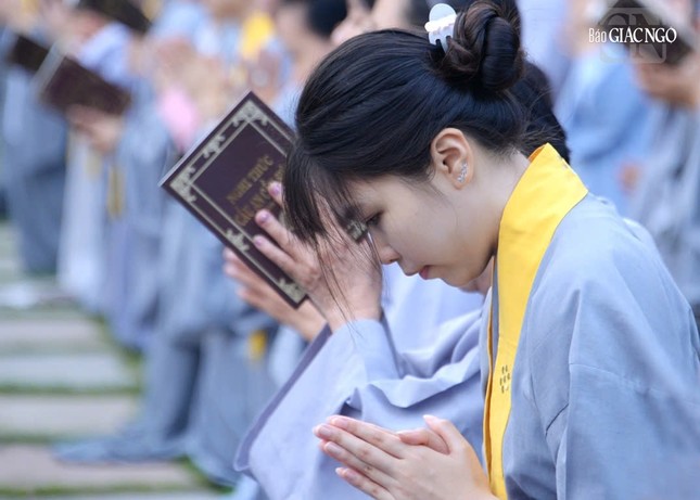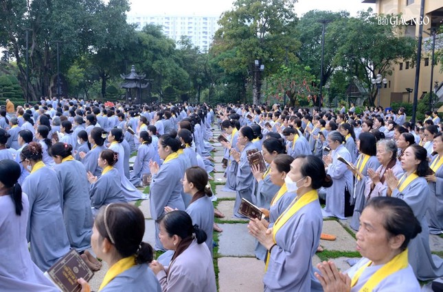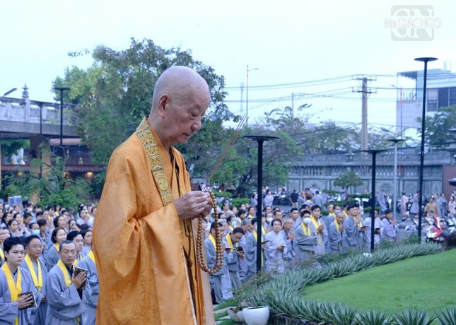 Buổi lễ diễn ra trước khu vực thánh tượng Bồ-tát lộ thiên trong khuôn viên chùa Huê Nghiêm