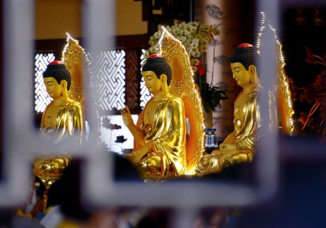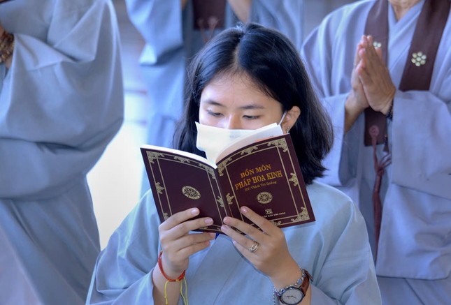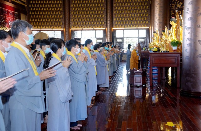 Hôm nay, 9-2 (12 tháng Giêng năm Ất Tỵ), hàng trăm người đã tham dự lễ phát nguyện quy y Tam bảo, trở thành Phật tử, tại chùa Huê Nghiêm (TP.Thủ Đức, TP.HCM) với sự chứng minh của Đại lão Hòa thượng Thích Trí Quảng, phương trượng chùa.