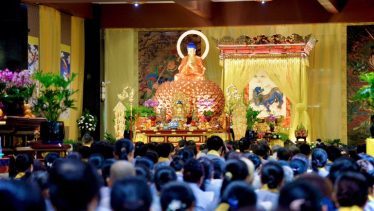 Vì vậy, tôi ngồi niệm Phật A Di Đà, nghĩ về Đức Phật A Di Đà, nghĩ về Cực lạc, nghĩ về Thánh chúng, nên tôi nhìn xuống thấy mọi người là Thánh chúng. Mà quý vị đang ngồi trang nghiêm thanh tịnh nghe pháp thì như vậy, quý vị là Thánh chúng rồi.